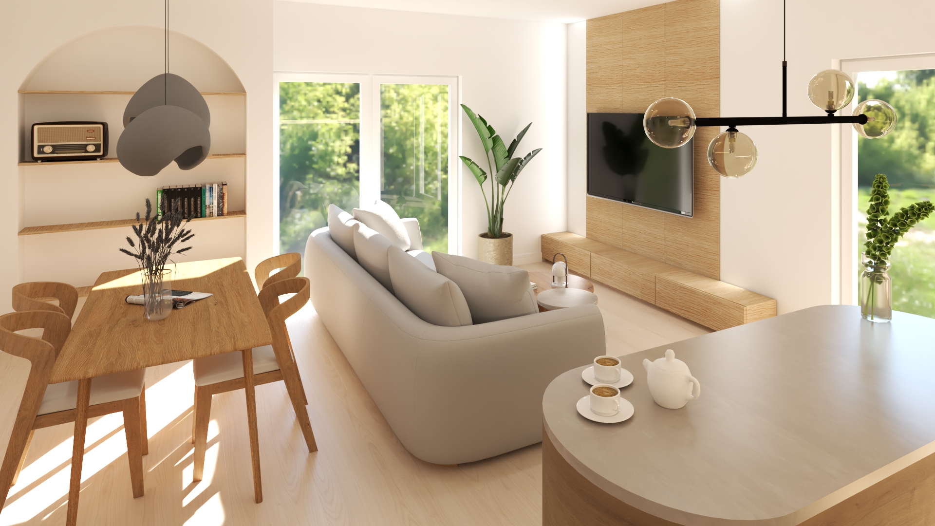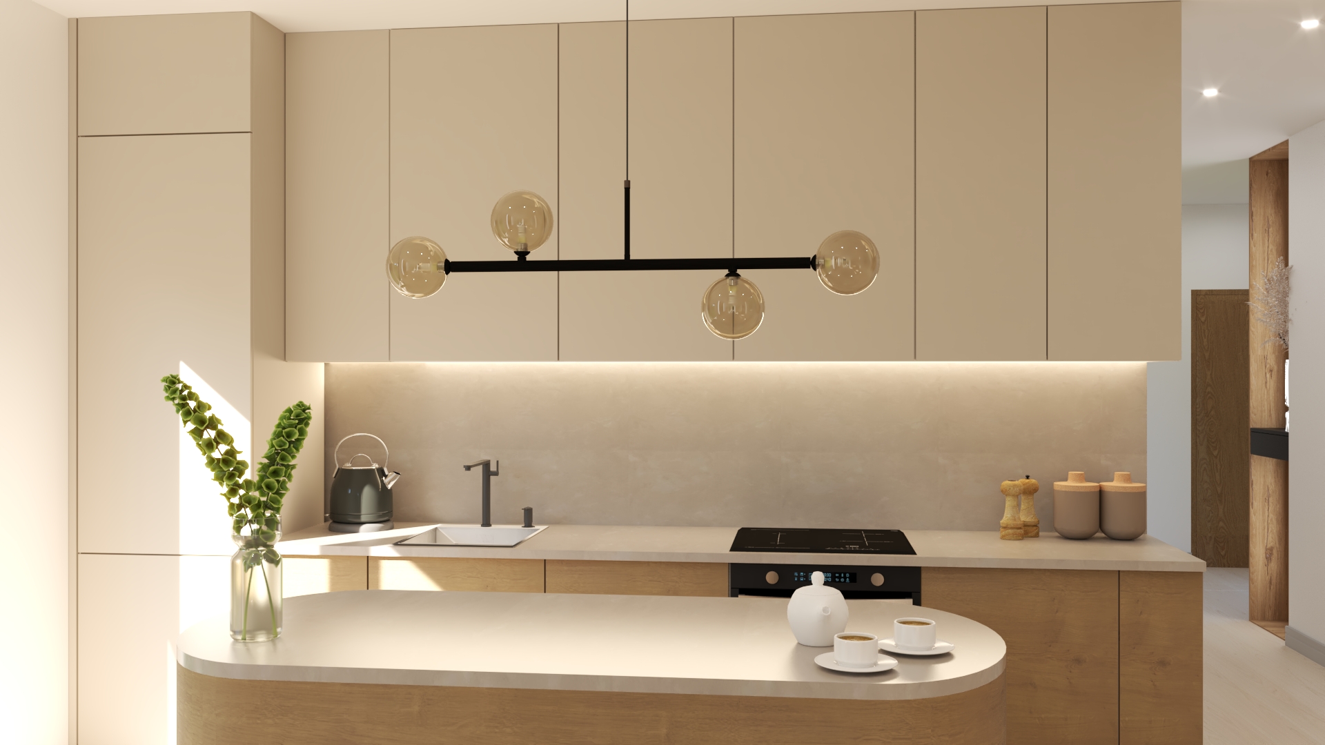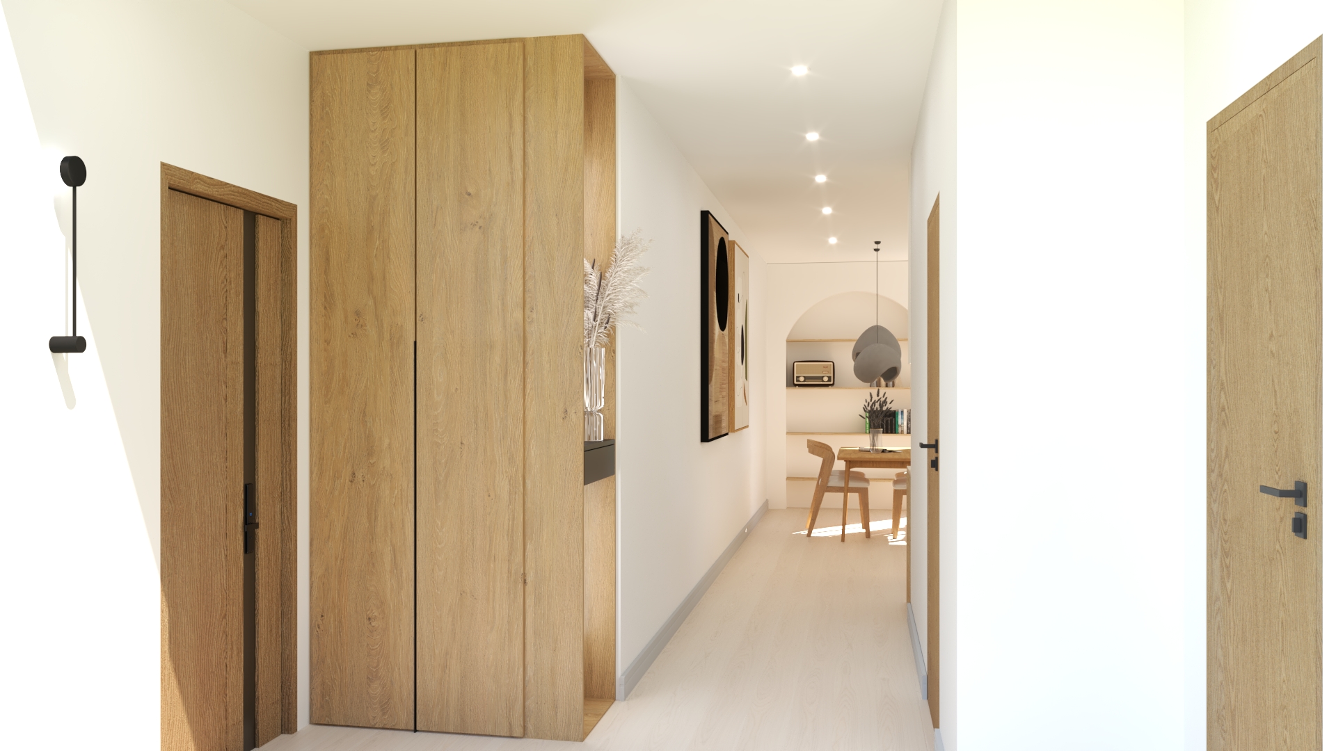 To nowoczesny apartament w stylu japandi dla osób, które cenią minimalizm, naturę i eleganckie, harmonijne wnętrza.