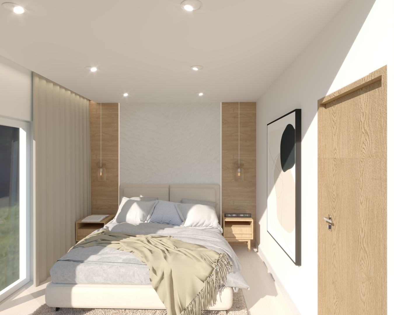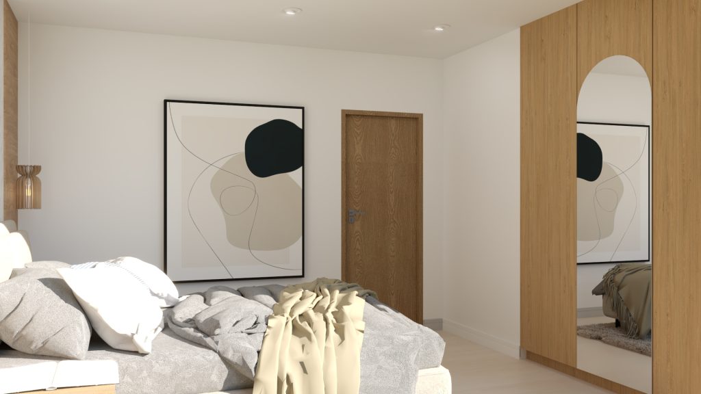 Projekt wnętrza japandi opiera się na prostych formach, ograniczonej liczbie dodatków oraz dbałości o detal. Ciepłe odcienie drewna i miękkie oświetlenie nadają wnętrzu przytulności, a przemyślany układ funkcjonalny zapewnia komfort codziennego użytkowania.